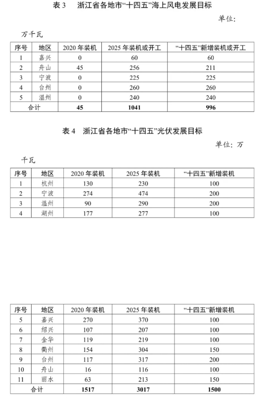 表 3 浙江省各地市"十四五"海上風(fēng)電發(fā)展目標(biāo)