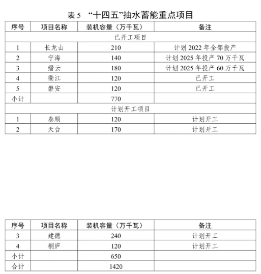 有序發(fā)展抽水蓄能電站。積極推進(jìn)長龍山、寧海、縉云、衢江、磐安等抽水蓄能開工項(xiàng)目的建設(shè),穩(wěn)妥開展泰順、天臺等抽水蓄能電站項(xiàng)目前期工作,適時(shí)啟動建德、桐廬站點(diǎn)的前期工作。結(jié)合現(xiàn)有站點(diǎn),合理規(guī)劃布局,積極推動新一輪抽水蓄能電站選點(diǎn)工作。加強(qiáng)抽水蓄能電站建設(shè)管理體制、電價(jià)機(jī)制等研究。"十四五"期間,全省抽水蓄能電站力爭新增裝機(jī)容量 340 萬千瓦,累計(jì)裝機(jī)容量達(dá)到798 萬千瓦。