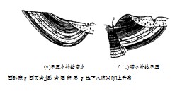 松散沉積物含水層之間的黏性土層,并不完全隔水,且具有微透水性。具有一定水頭 差的相鄰含水層,通過弱透水層發生的滲透,稱為越流。顯然,隔水層越薄,隔水性越差, 相鄰含水層之間的水頭差越大,則越流補給量越大。盡管單位面積上的越流量通常很小, 由于越流是在弱透水層分布的整個范圍內發生,總的補給量也是相當可觀的。